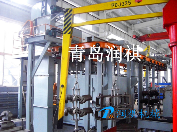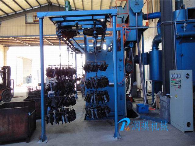 工件隨吊鏈可連續(xù)運(yùn)行、步進(jìn)運(yùn)行或采用積放推式懸鏈輸送工件,使工件在裝卸料以及拋丸區(qū)分別處于停止?fàn)顟B(tài),實(shí)現(xiàn)定點(diǎn)裝卸和定點(diǎn)拋丸工序,根據(jù)工件不同可單點(diǎn)吊重50~2000kg,且生產(chǎn)率高,運(yùn)行可靠,對各類易吊掛類零件的大批量清理,非常適用。如發(fā)動機(jī)缸體缸蓋、電機(jī)殼體、齒輪、摩托車發(fā)動機(jī)殼體、機(jī)車鉤尾框組件、轉(zhuǎn)向架組件、五金工具殼體、水泵等清理效果尤佳。通過拋丸清理,不但可以去除工件表面的銹蝕,清理掉結(jié)構(gòu)件上的焊渣,還可以消除工件的焊接應(yīng)力,提高工件的抗疲勞強(qiáng)度,增加工件噴漆時(shí)的漆膜附著力,并達(dá)到提高整個(gè)工件表面及內(nèi)在質(zhì)量的目的。是汽車、拖拉機(jī)、柴油機(jī)、電機(jī)、閥門等行業(yè)的理想選擇等。一般可按照用戶產(chǎn)品要求設(shè)計(jì)制作。